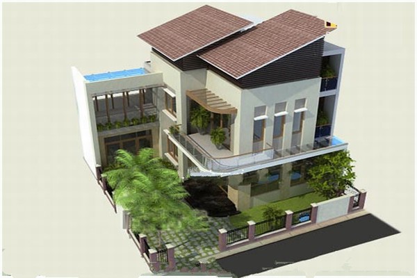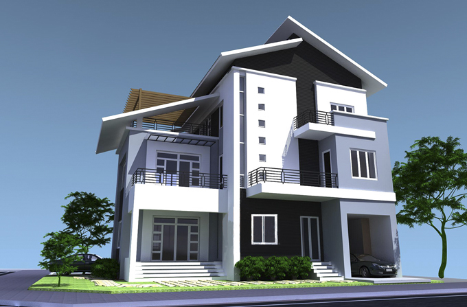 Biệt thự 3 tầng mái lệch thiết kế cho gia đình anh Trung ở Bình Dương trên lô đất góc...